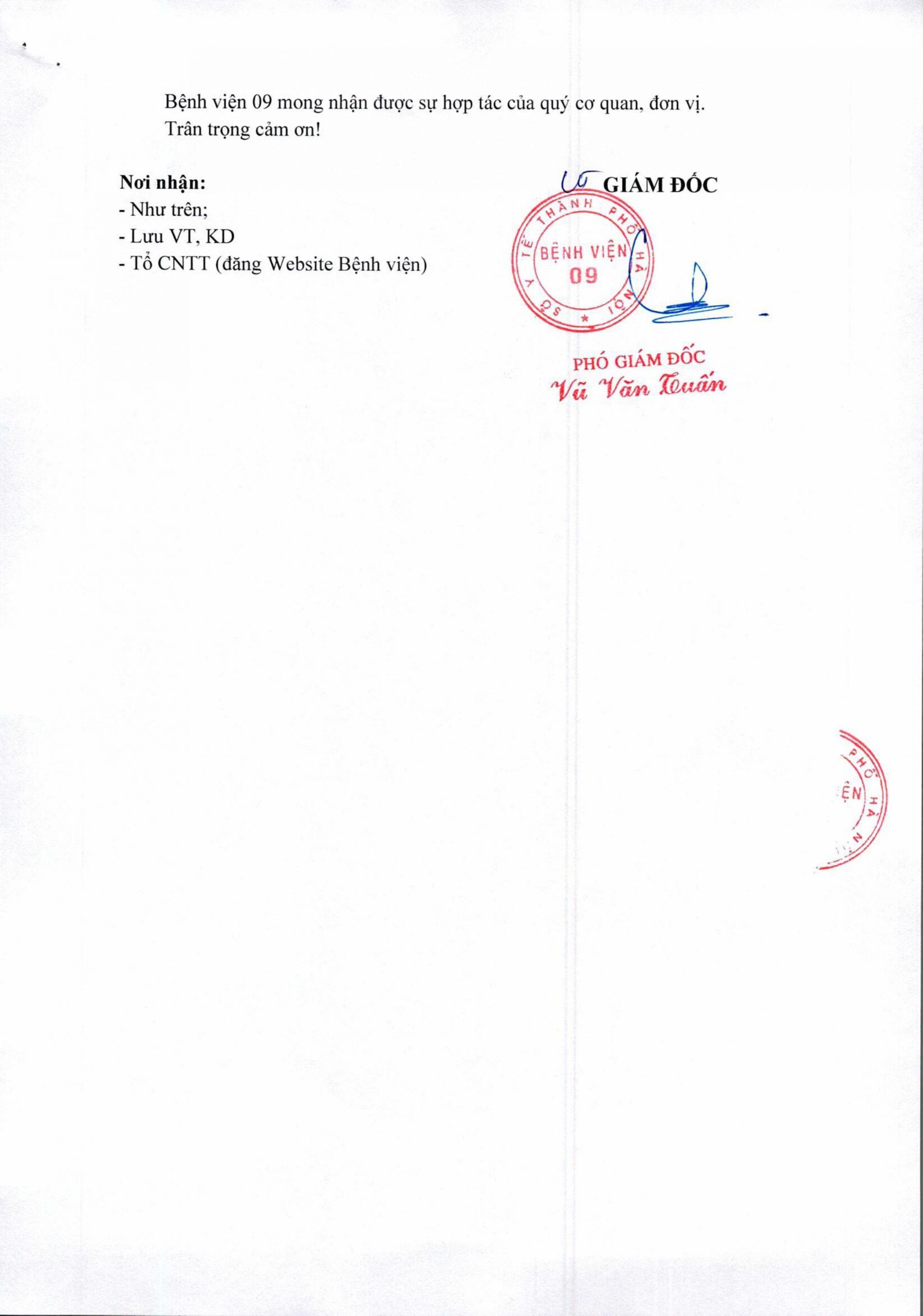 - Thư mời báo giá: “Gói thầu Khám sức khoẻ cán bộ nhân viên Bệnh viện 09 năm 2025”