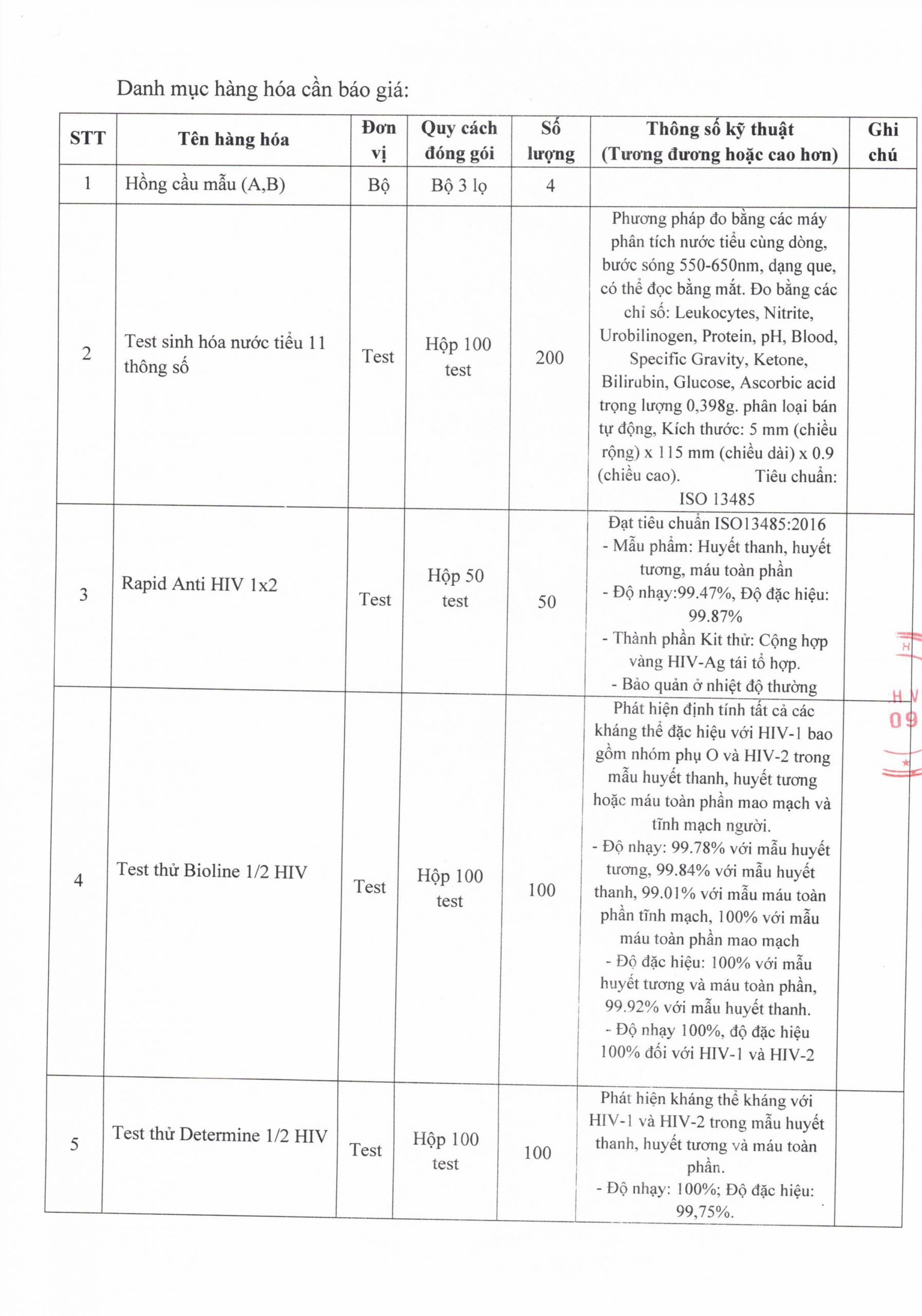 Thư mời tham gia báo giá hoá chất, vật tư y tế tiêu hao.